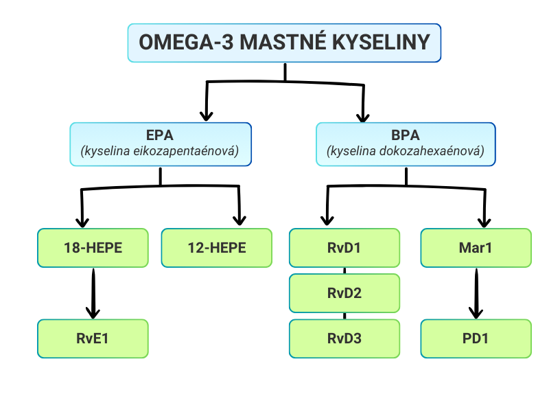 Omega-3 polynenasýtené mastné kyseliny (EPA a DHA) sú už dlho známe svojimi protizápalovými vlastnosťami. Súčasné výskumy však odhaľujú novú, hlbšiu úroveň ich interakcie s organizmom. Ukazuje sa, že na dosiahnutie týchto účinkov je potrebná premena omega-3 na SPM, ktoré zase pomáhajú organizmu nielen potláčať zápal, ale aktívne ho riešia a spúšťajú hojenie tkanív.